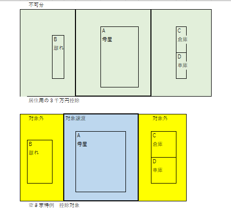 空き家特例:家屋は母屋のみ、敷地も母屋部分のみが対象