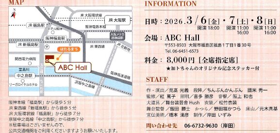| 料金 | 8,000円(全席指定席) ★加トちゃんオリジナル記念ステッカー付 |